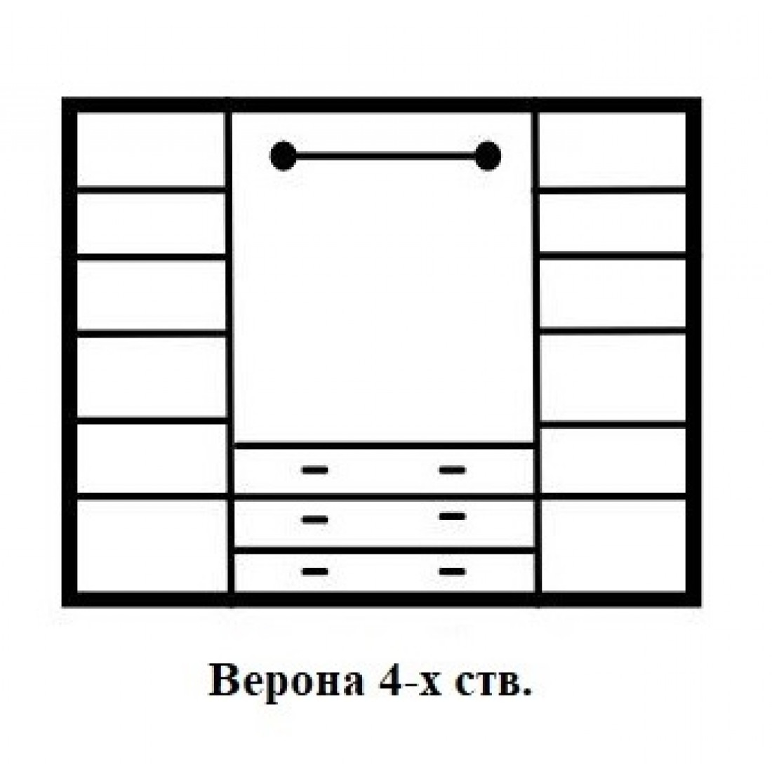 Четырехстворчатый шкаф для одежды Верона MUR-102-04 st с зеркалом