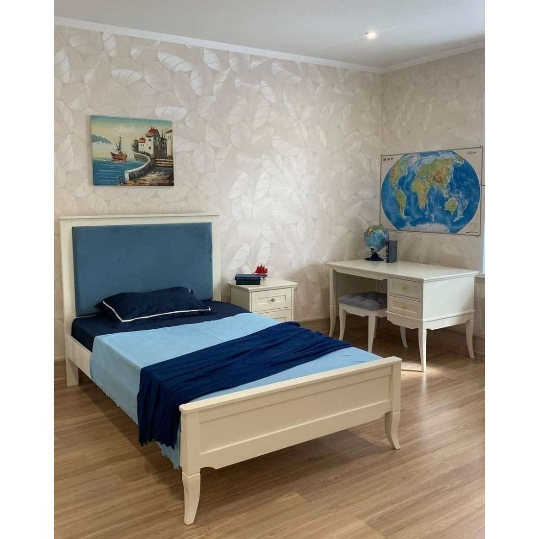 Кровать оснащена ортопедическим основанием для матраса — ламелями.
