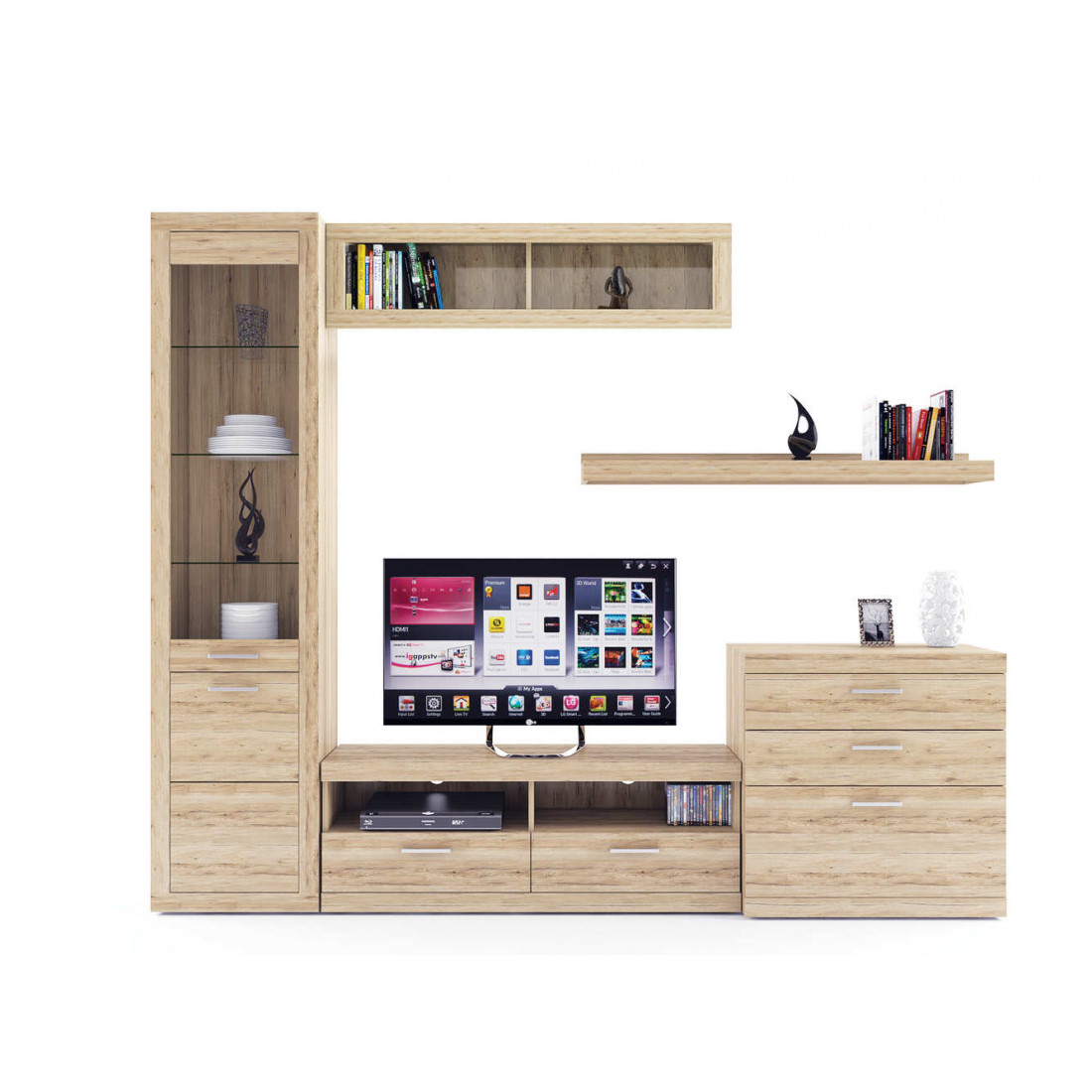 2. 4 варианта тумб RTV с выдвижными ящиками на шариковых направляющих. 2 размера надставных полок для RTV-тумб (полка TVB и полка TV), позволяющих установить выше телевизор. Варианты навесных полок, соответствующих по размеру тумбам для телевизора. Тумба RTV 2S2NL имеет глубину 351 мм, что позволяет составить модули, имеющие такую же глубину, в одну линию без выступающих элементов.
