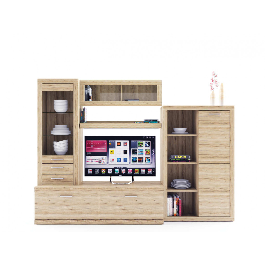 2. 4 варианта тумб RTV с выдвижными ящиками на шариковых направляющих. 2 размера надставных полок для RTV-тумб (полка TVB и полка TV), позволяющих установить выше телевизор. Варианты навесных полок, соответствующих по размеру тумбам для телевизора. Тумба RTV 2S2NL имеет глубину 351 мм, что позволяет составить модули, имеющие такую же глубину, в одну линию без выступающих элементов.