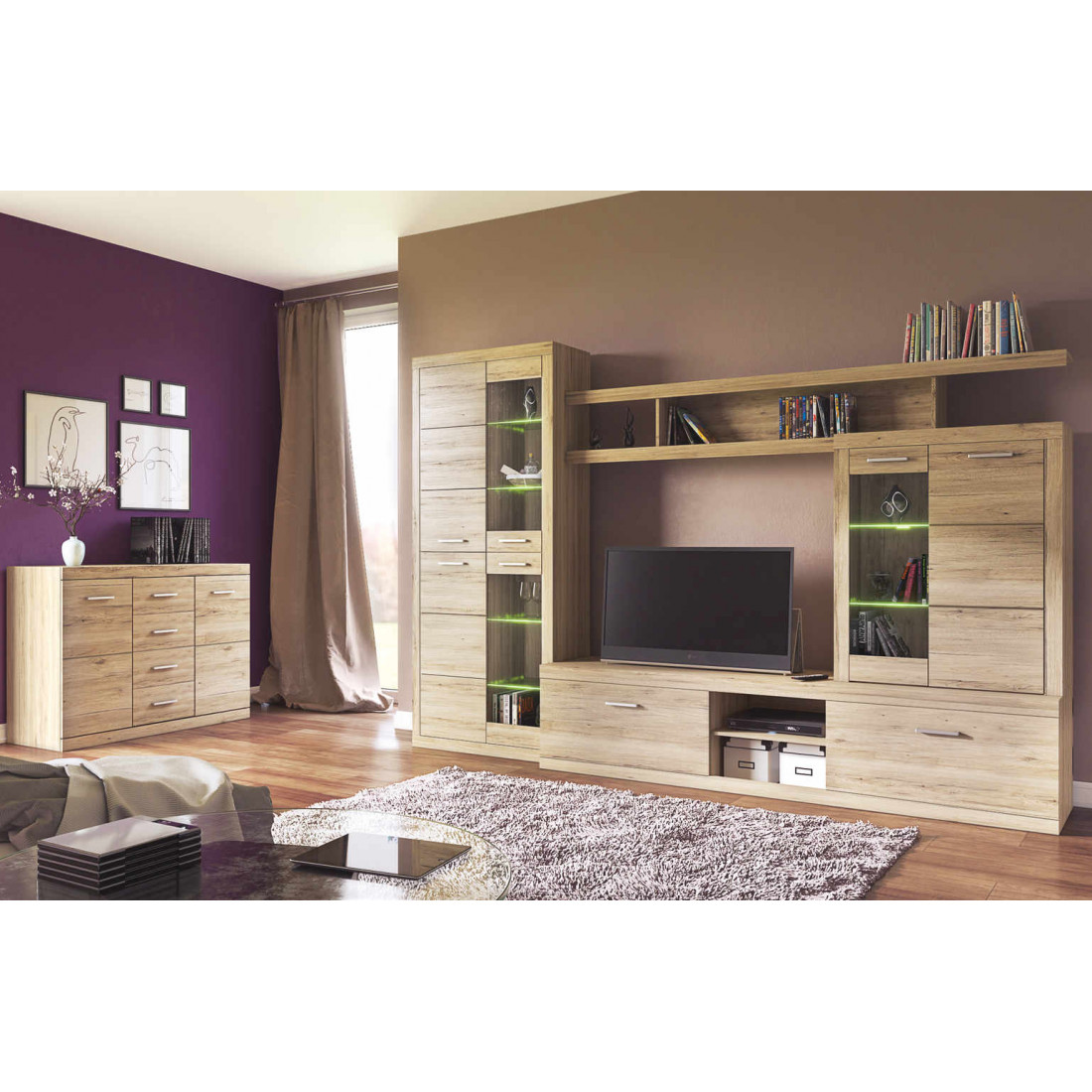 2. 4 варианта тумб RTV с выдвижными ящиками на шариковых направляющих. 2 размера надставных полок для RTV-тумб (полка TVB и полка TV), позволяющих установить выше телевизор. Варианты навесных полок, соответствующих по размеру тумбам для телевизора. Тумба RTV 2S2NL имеет глубину 351 мм, что позволяет составить модули, имеющие такую же глубину, в одну линию без выступающих элементов.