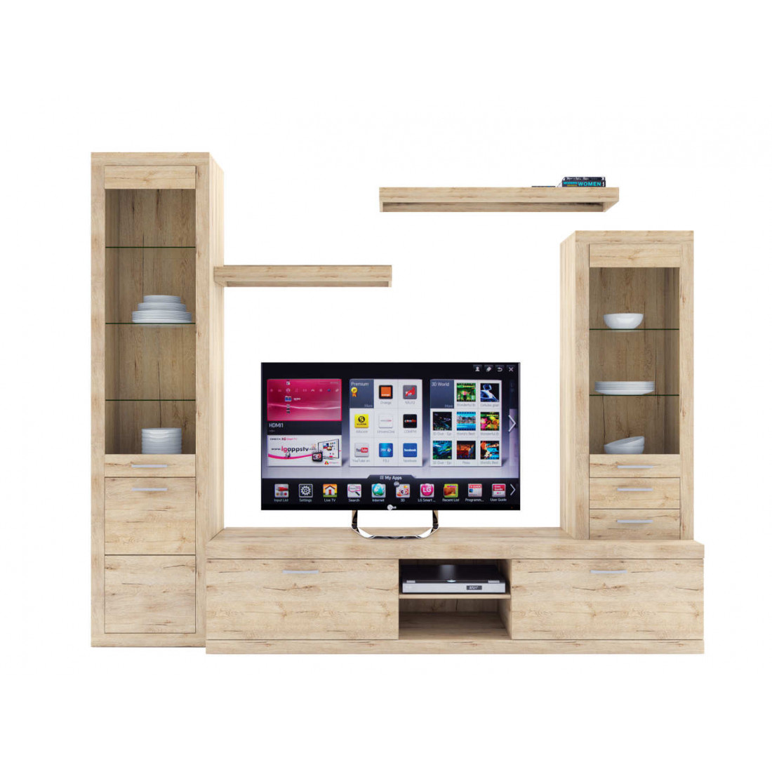 2. 4 варианта тумб RTV с выдвижными ящиками на шариковых направляющих. 2 размера надставных полок для RTV-тумб (полка TVB и полка TV), позволяющих установить выше телевизор. Варианты навесных полок, соответствующих по размеру тумбам для телевизора. Тумба RTV 2S2NL имеет глубину 351 мм, что позволяет составить модули, имеющие такую же глубину, в одну линию без выступающих элементов.