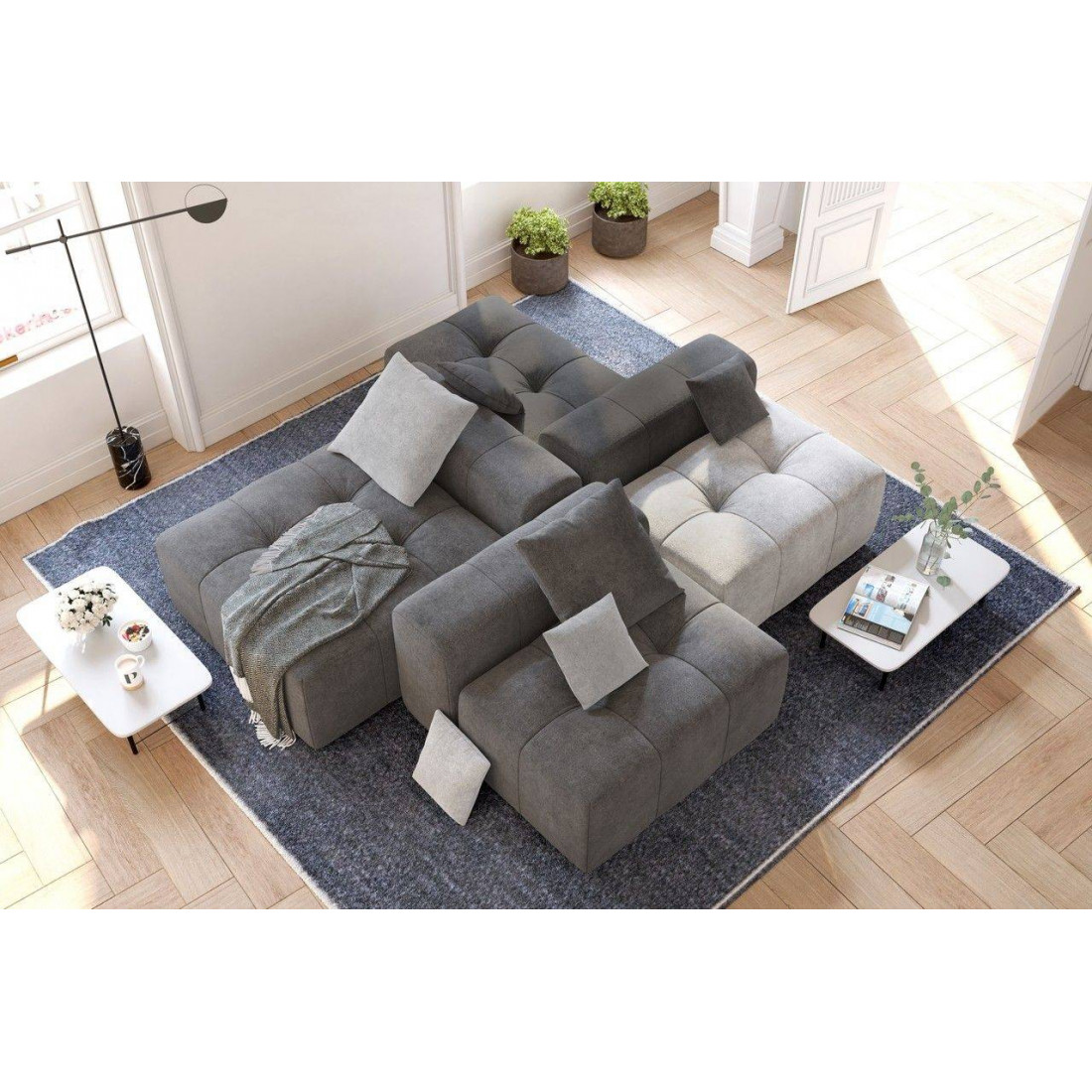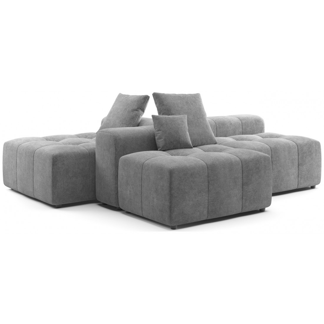 Модульный диван «Торонто» — это отличный вариант для тех, кому сложно подобрать монолитную конструкцию из-за сложной конфигурации помещения, а также тех, кто любит экспериментировать и часто делает перестановку. С его помощью можно легко изменить интерьер, превратив часть конструкции в пуф, кресло или софу.