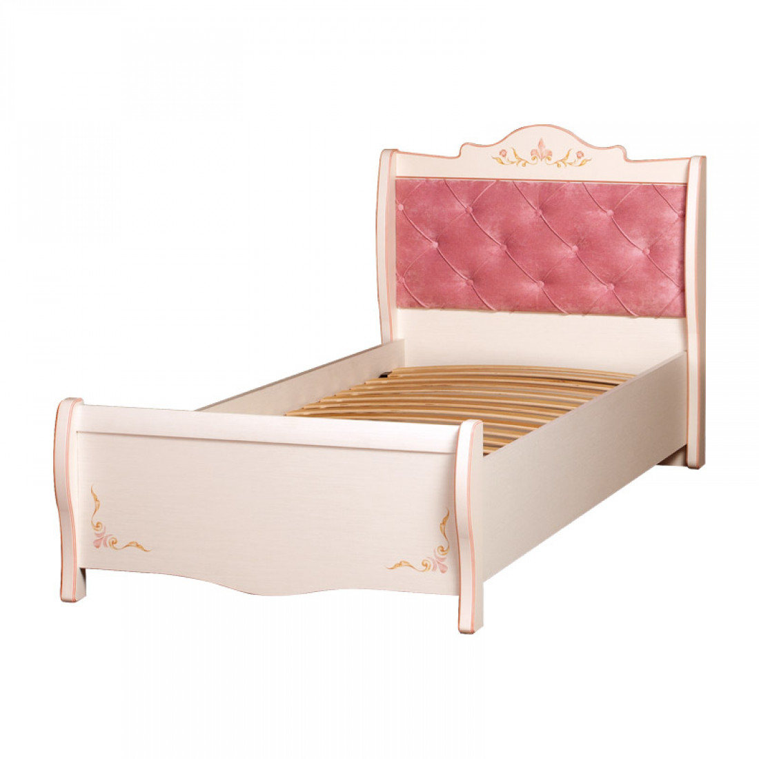 Корпус: ДСП, декор – кремовый белый. Основание кровати – ламели