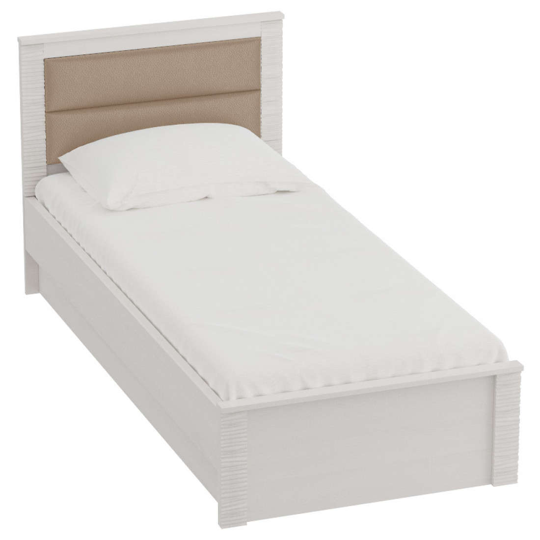 Мягкая спинка кровати обита экокожей.