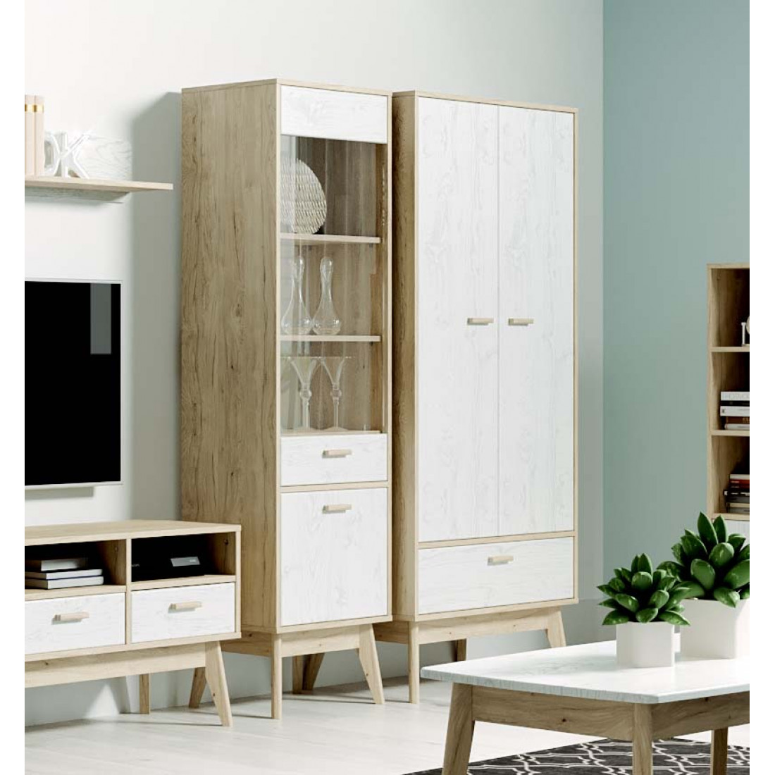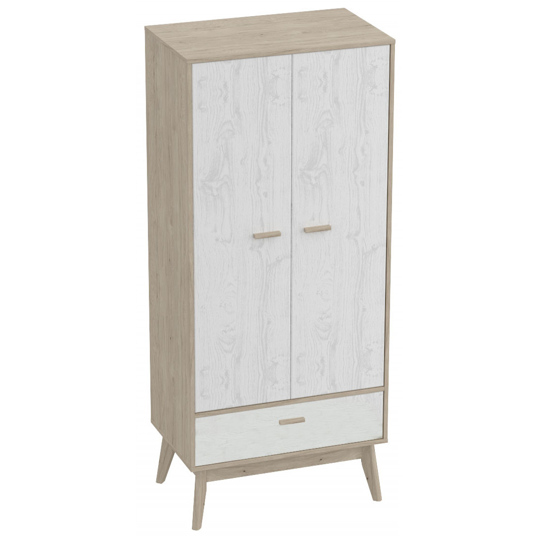Ультратрендовый шкаф ждя одежды Калгари от Мебельград, выполненный в светлых тонах с элементами сдержанного стиля 60-х - высокие ножки, выраженная деревянная текстура натурального дуба, четкие формы. Вся мебель очень мобильная, компактная, вызывает чуство легкости и свободного пространства, при этом она функциональна.