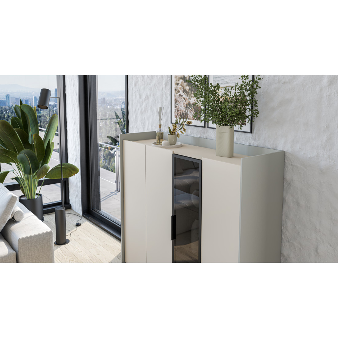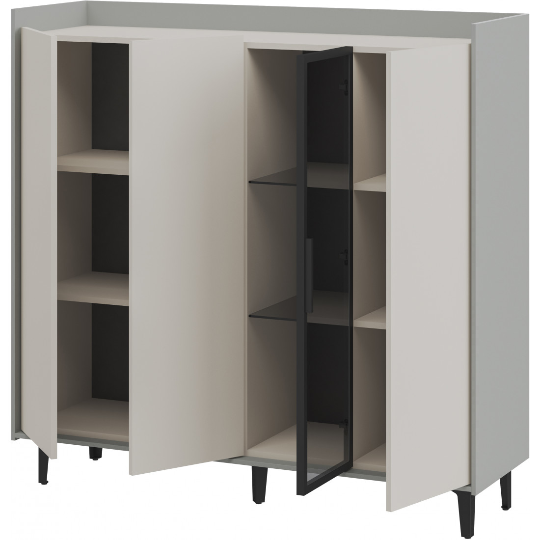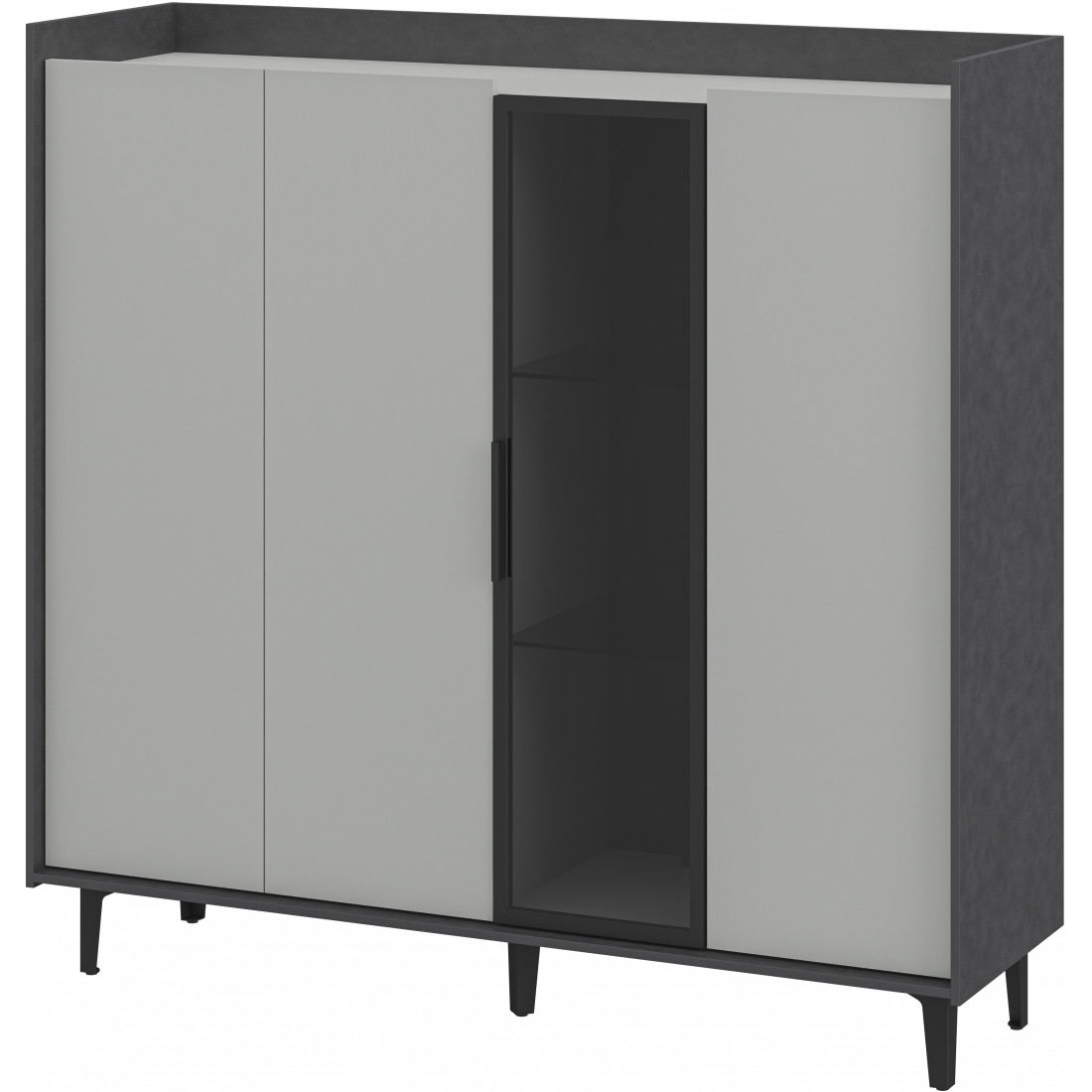 Элегантный шкаф Модена создает изысканную атмосферу в вашей гостиной. Предлагается в трех стильных вариантах цветов: Белый-Дуб Элисон, Лунный камень-жемчуг, Металл Бруклин-лунный жемчуг. Ножки из металла обеспечивают прочную поддержку. Темное стекло добавляет утонченности дизайну. Шкаф имеет три отделения с полками для удобного хранения, а также одно отделение со стеклянными полками и стеклянным фасадом, придающим ему элегантность. Идеальное решение для организации пространства в вашей гостиной