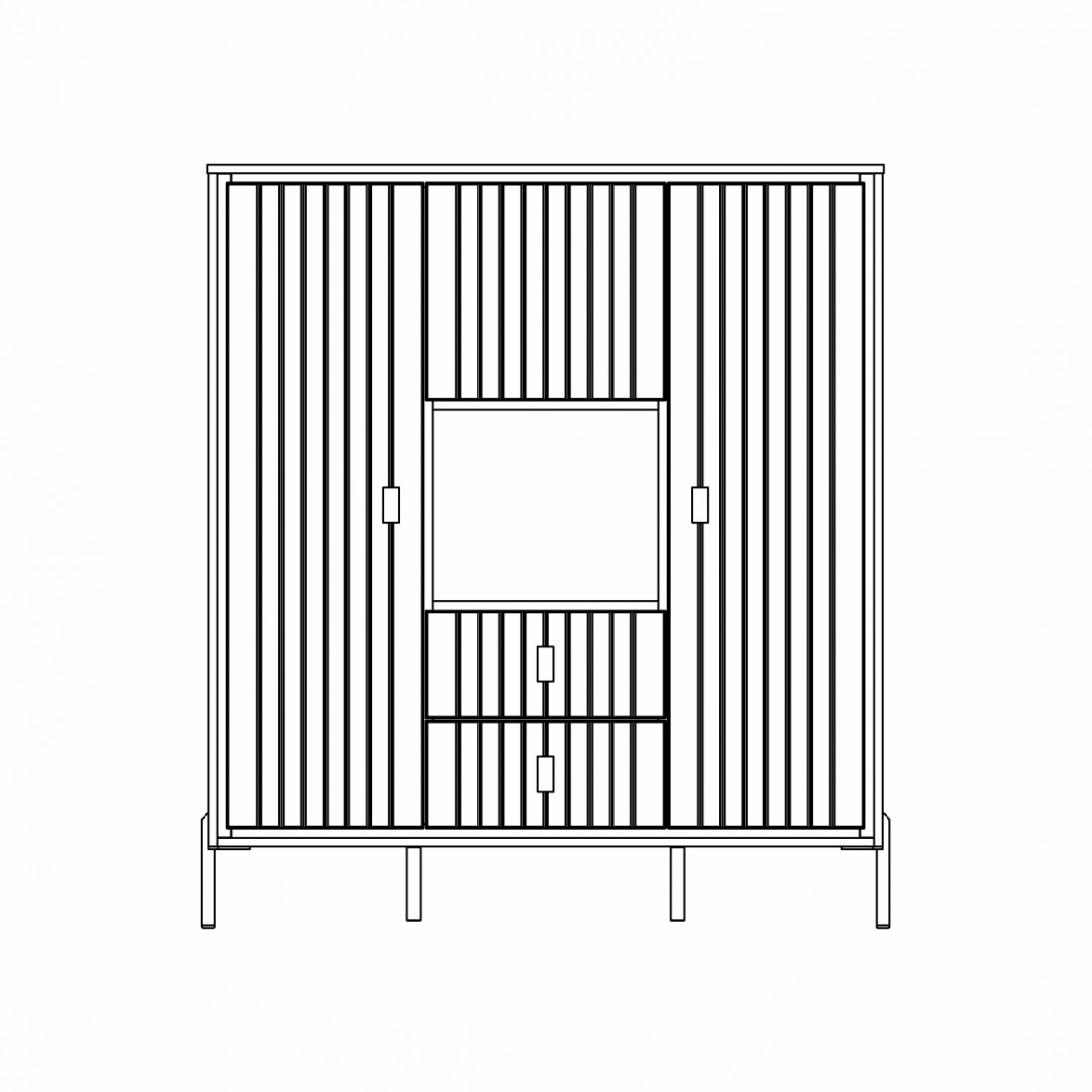 Три отделения для хранения посуды и два выдвижных ящика.