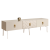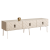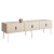 Дверцы и шуфляды ТВ-тумб открываются за счет бесшумных петель и направляющих фирм «Hettich» (Германия) и «Hafele» (Германия). Кассетницы тумбочек с рисунком, нанесенным методом шелкографии, крышки тумб привезены из Италии. Двери и боковины также украшены профилями МДФ, изготовленными и привезенными из Италии.